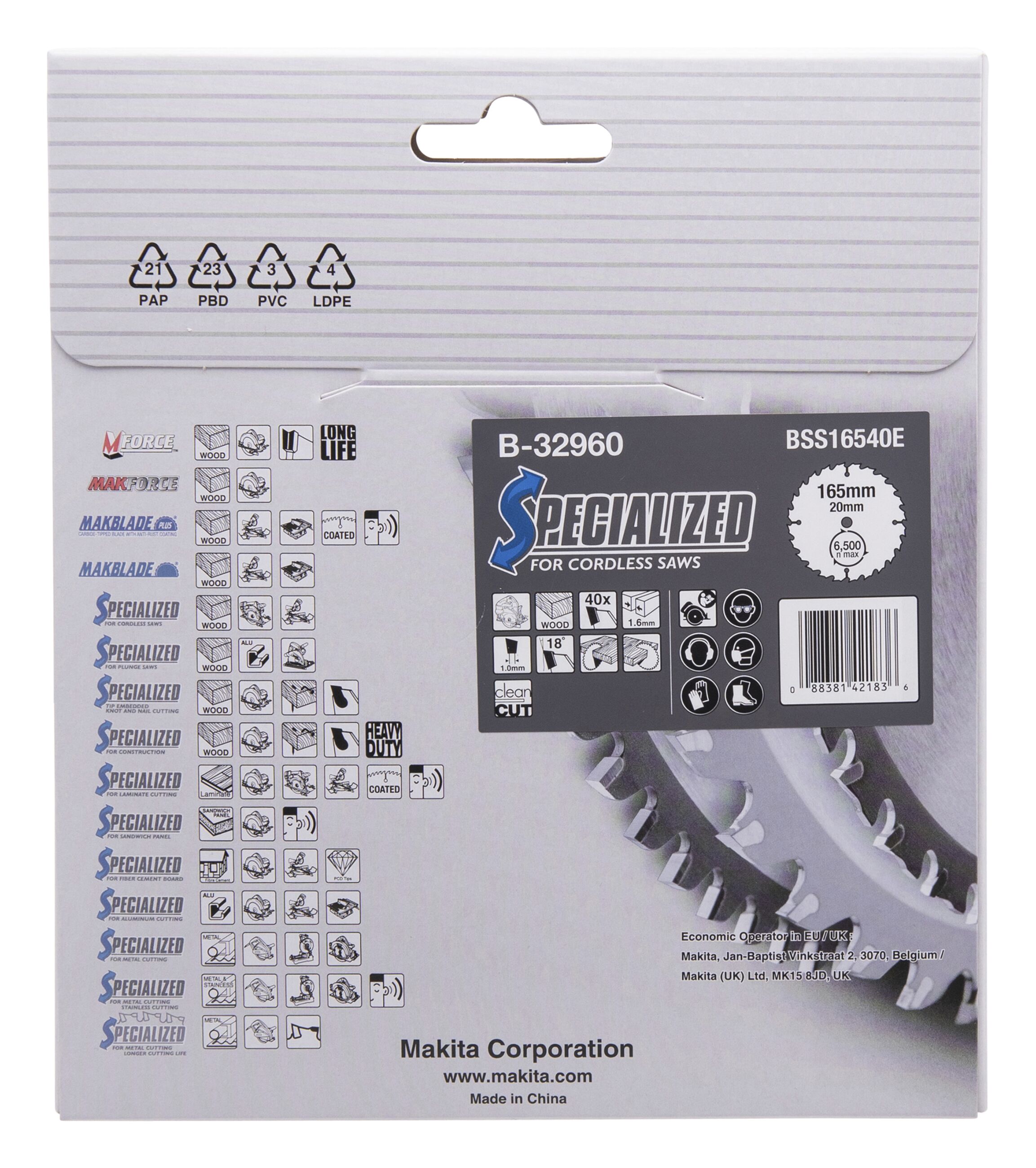 Makita B-32960 SPECIALIZED Sägeb.165x20x40Z