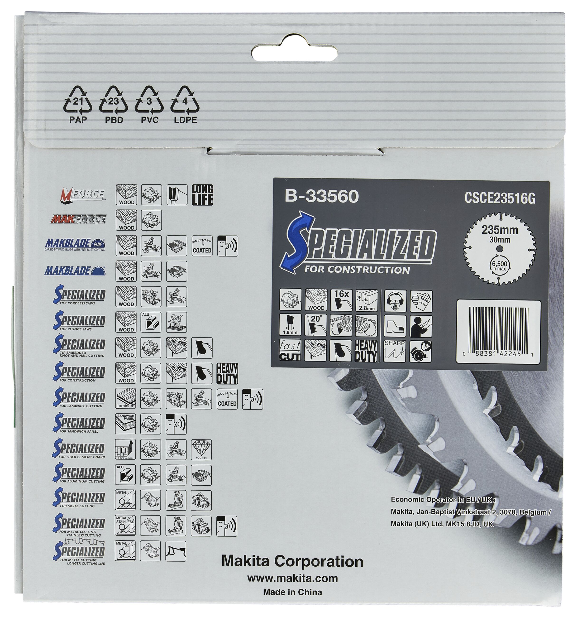 Makita B-33560 SPECIALIZED Sägeb.235x30x16Z