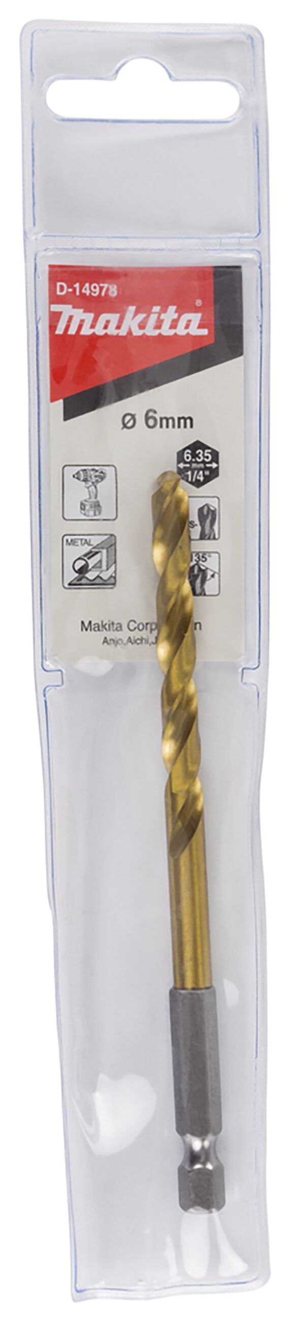 Longlife HSS-TiN Metallbohrer D 6,0 mm mit einer Gesamtlänge von 113 mm - 1/4" 6-kant Durchmesser ;6,0 mm Länge;113 mm Arbeitslänge;57 mm Sechskantaufnahme;1/4" VPE;1