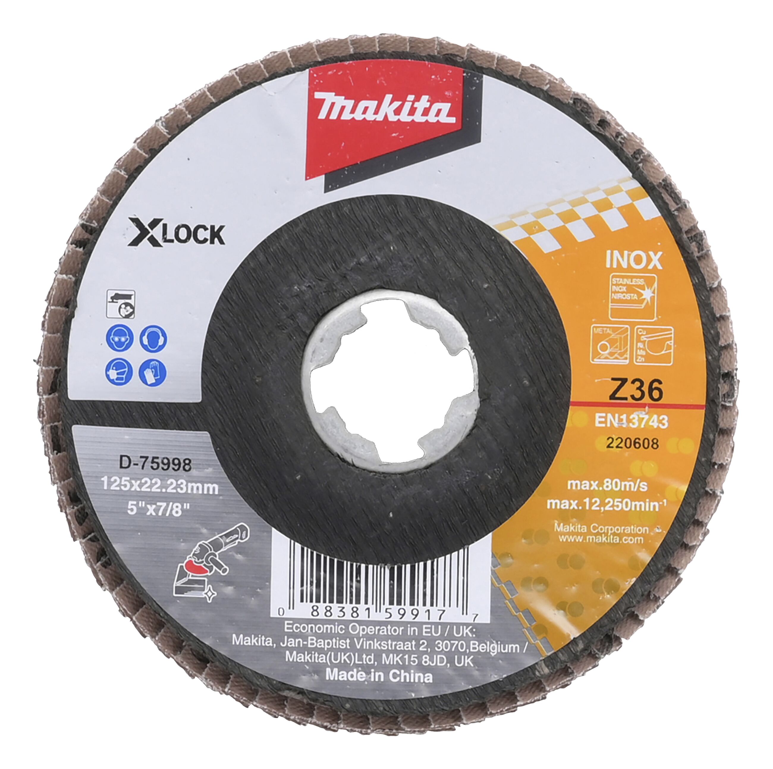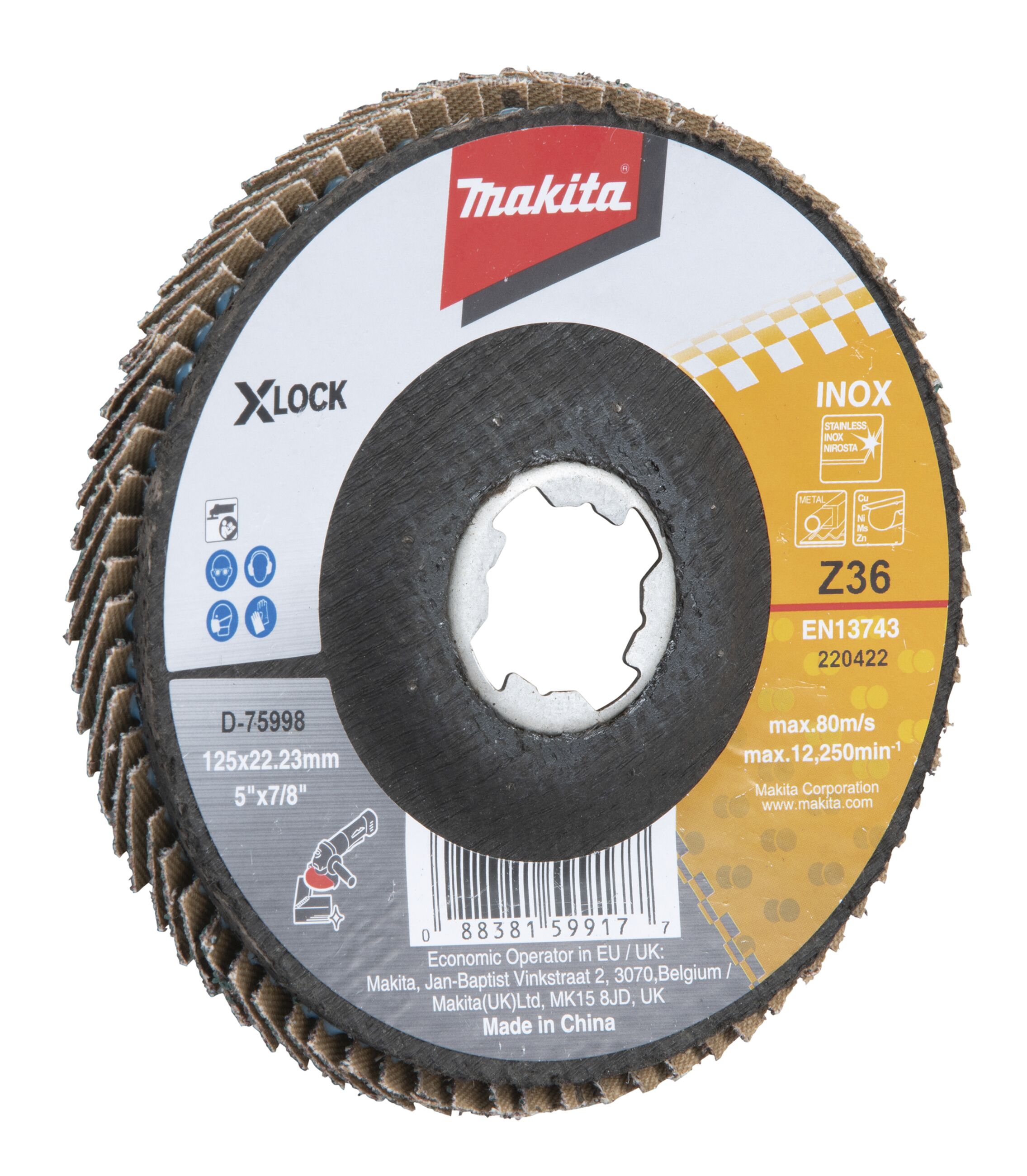 X-Lock Fächerscheibe mit erhöhter Standzeit aus Zirkonium-Aluminiumoxid, abgewinkelt mit glasfaserverstärkter Rückseite Scheiben-Durchmesser;125 mm Körnung;Z36 VPE;1