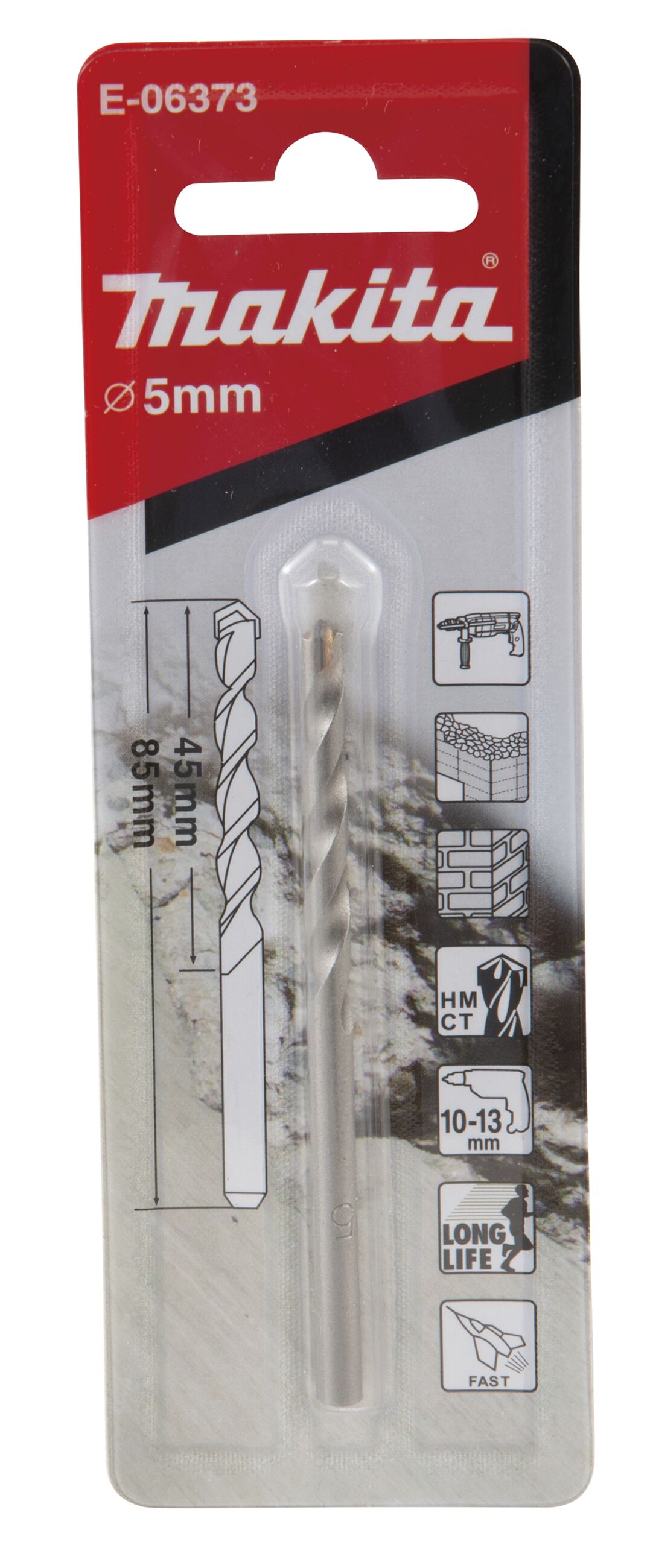 Steinbohrer mit aufgelöteter Hartmetallspitze für bspw. Mauerwerk oder Ziegelstein Durchmesser ;5,0 mm Länge;85 mm Arbeitslänge;45 mm Schaftgröße;4,5 mm VPE;1