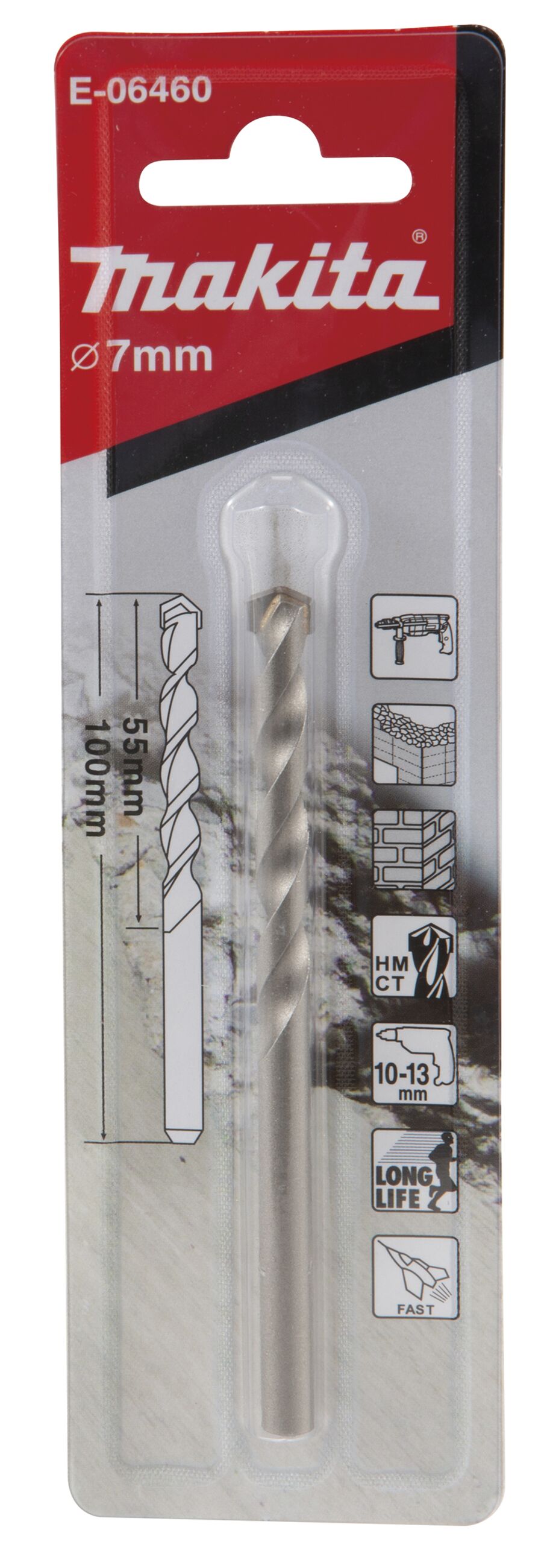 Steinbohrer mit aufgelöteter Hartmetallspitze für bspw. Mauerwerk oder Ziegelstein Durchmesser ;7,0 mm Länge;100 mm Arbeitslänge;55 mm Schaftgröße;6,0 mm VPE;1