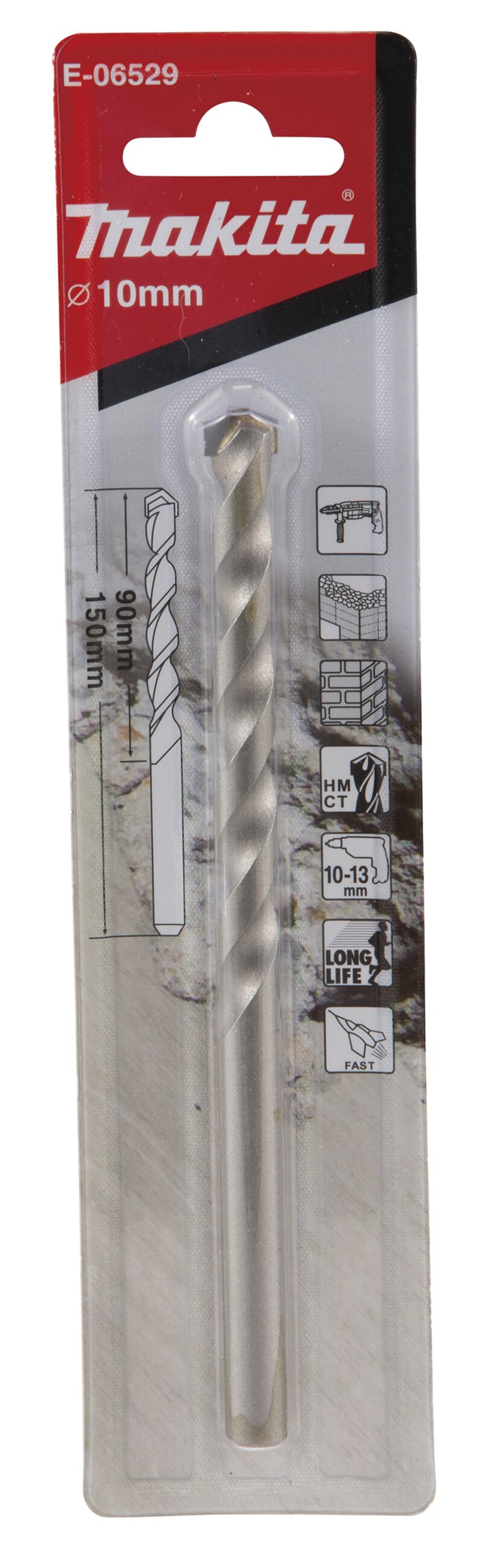 Steinbohrer mit aufgelöteter Hartmetallspitze für bspw. Mauerwerk oder Ziegelstein Durchmesser ;10,0 mm Länge;150 mm Arbeitslänge;90 mm Schaftgröße;8,4 mm VPE;1