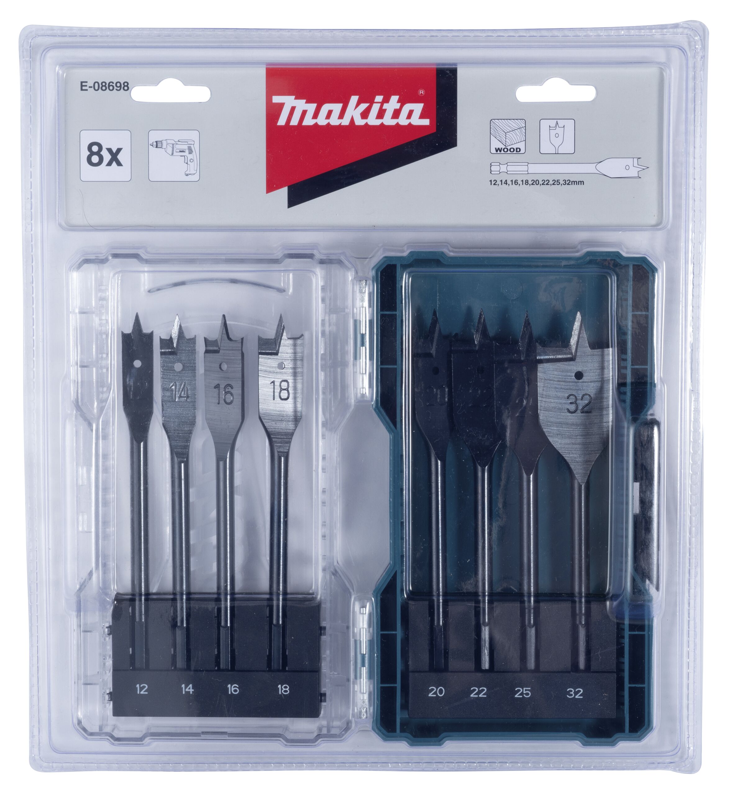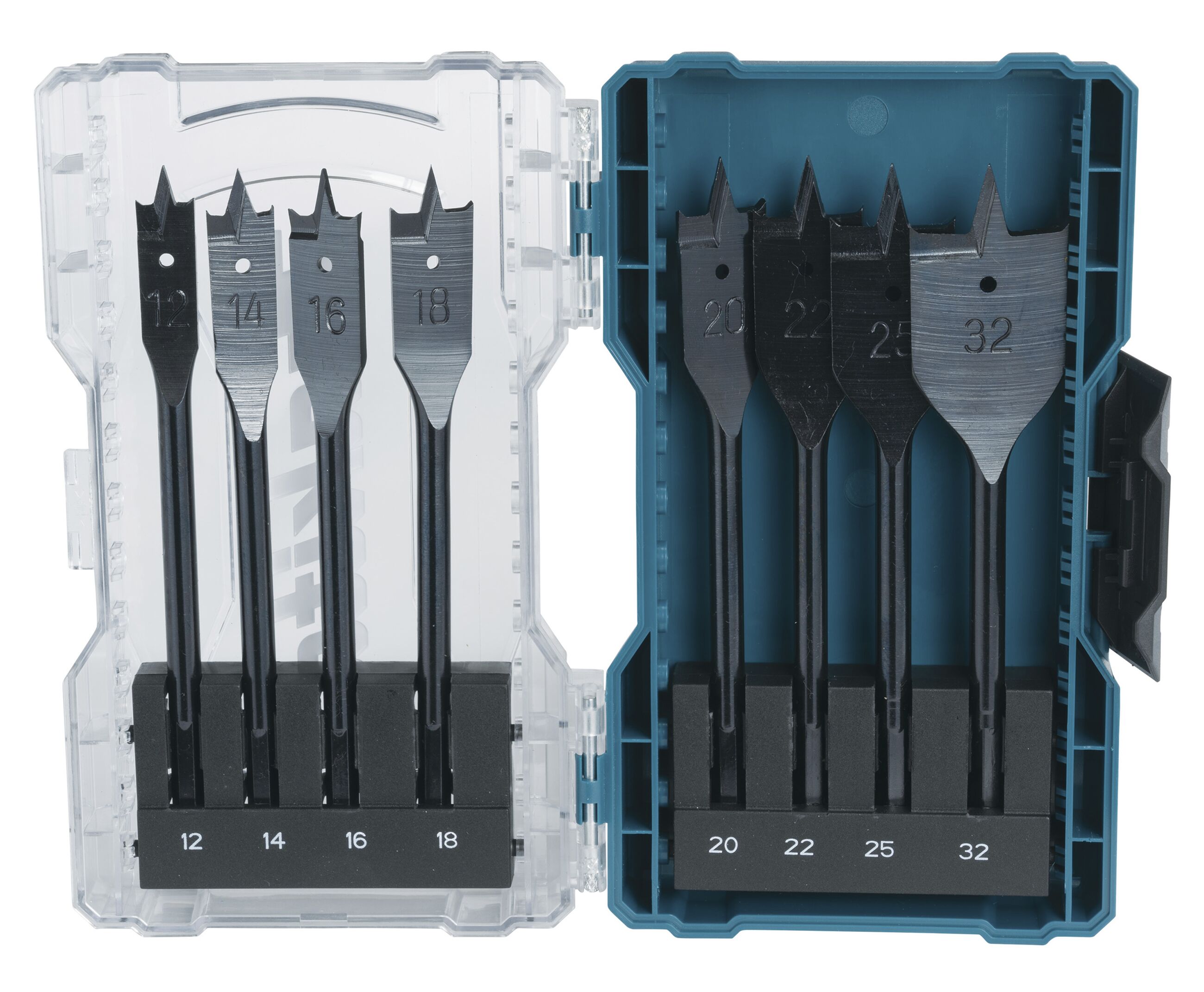Flachfräsbohrer-Set D 12-32 mm mit 1/4"-Sechskantaufnahme Durchmesser ;12,0 / 14,0 / 16,0 / 18,0 / 20,0 / 22,0 / 25,0 / 32,0 mm VPE;8 Länge;150 mm Arbeitslänge;125 mm