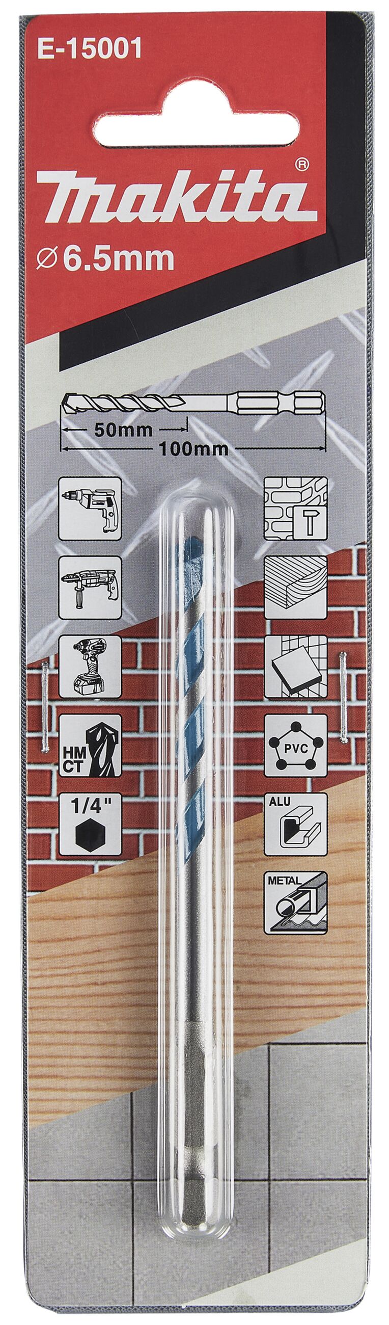 Multibohrer zum Bohren unterschiedlicher Materialien in einem Arbeitsgang Durchmesser ;6,5 mm Länge;100 mm Arbeitslänge;50 mm Sechskantaufnahme;1/4" VPE;1