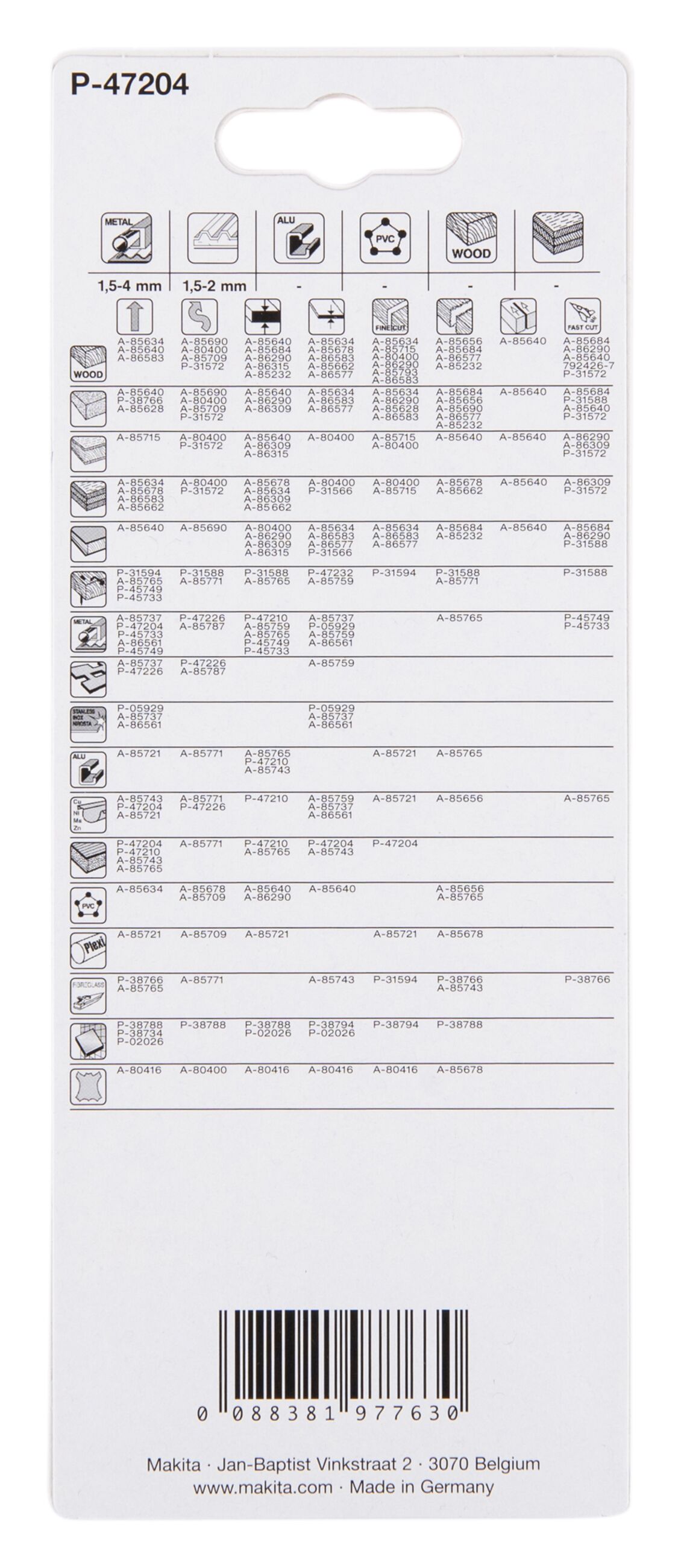 Zähne gefräst und gewellt. Langes, flexibles Blatt für Stahl 1,0 - 3,0 mm Materialstärke, Profile, Rohre und Sandwichmaterialien bis 80 mm Materialstärke. Lange Lebensdauer.